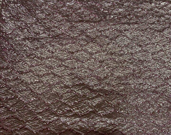 Tejido lurex rugoso con relieve en tono rosa y plata.