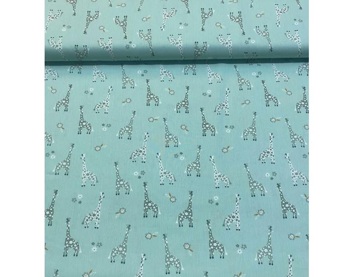 Tela algodón jirafas verde